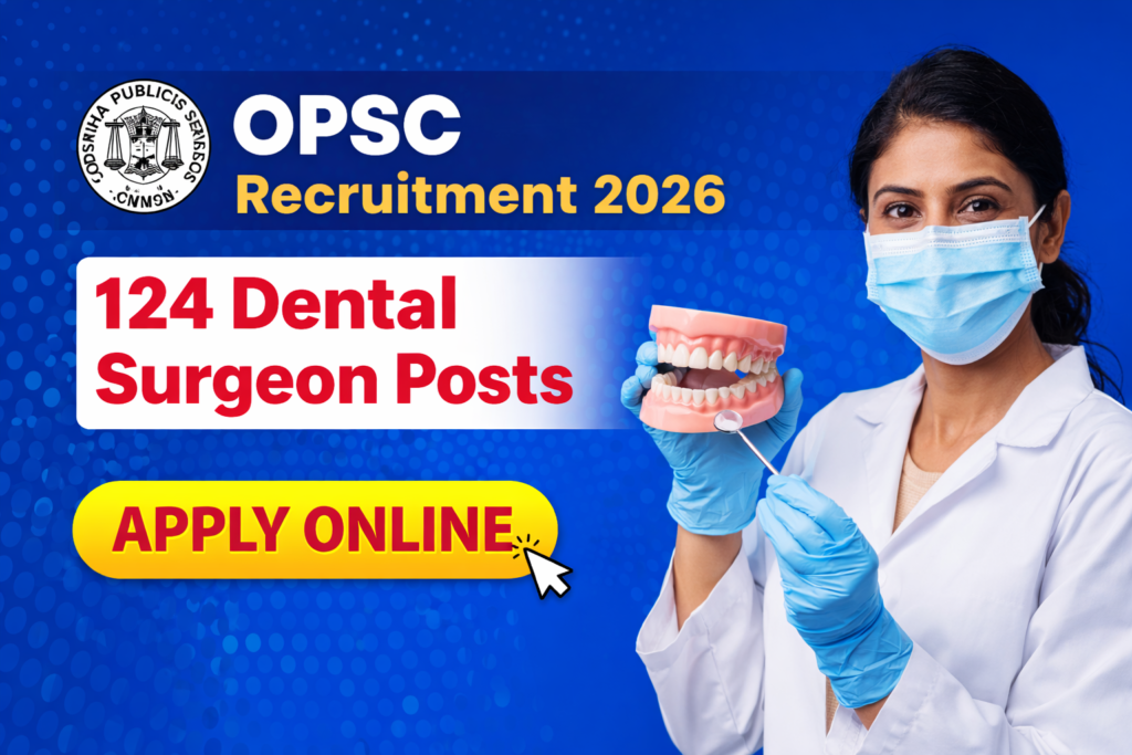 The Odisha Public Service Commission (OPSC) has released the official notification for 124 Dental Surgeon posts under the Health & Family Welfare Department. Interested candidates with BDS qualification can apply online within the given dates. Below are complete details including vacancy, age limit, application fee, exam date, and selection process.