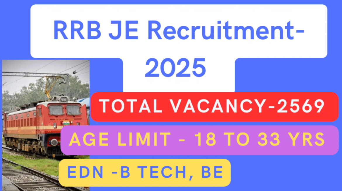 रेलवे का नाम सुनते ही लाखों करोड़ों युवाओं की आंखें चमक उठती हैं। अगर आप भी इंजीनियरिंग की डिग्री या डिप्लोमा लेकर बैठे है और अब एक सरकारी नौकरी (Sarkari Naukri) की तलाश कर रहे हैं, तो RRB JE Recruitment 2025 का यह आर्टिकल आपके लिए बहुत उपयोगी है, क्योंकि आपके लिए साल 2025 की सबसे बड़ी खुशखबरी आ चुकी है, रेलवे भर्ती बोर्ड (RRB) ने आखिरकार जूनियर इंजीनियर (JE) के कुल 2569 पदों के लिए धमाकेदार नोटिफिकेशन 28 अक्टूबर 2025 को जारी कर दिया है।
