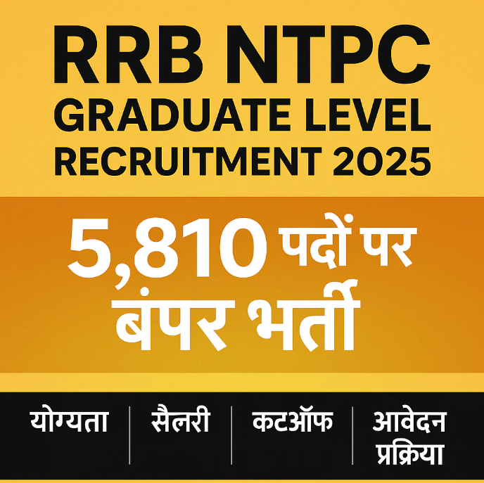 “Railway Recruitment Board (RRB) ने NTPC Graduate Level भर्ती 2025 के लिए 5810 पदों पर वैकेंसी निकाली है। जानें पात्रता, वेतनमान (Pay Level), पिछले वर्ष की कटऑफ, चयन प्रक्रिया और आवेदन करने की पूरी स्टेप-बाय-स्टेप जानकारी।”