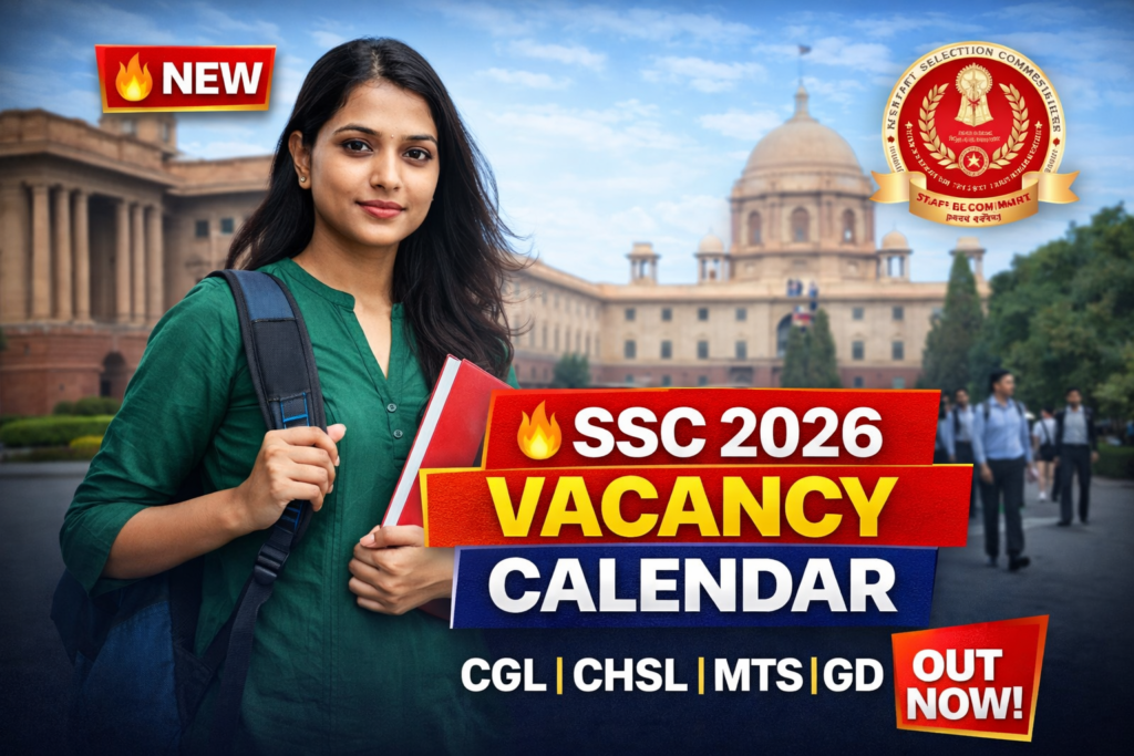 SSC Exam Calendar 2026-27: Staff Selection Commission (SSC) ने वर्ष 2026-27 के लिए Tentative Exam Calendar जारी कर दिया है। इस कैलेंडर में SSC CGL, CHSL, MTS, GD Constable, Delhi Police, JE, Stenographer सहित सभी प्रमुख परीक्षाओं की तारीखें दी गई हैं।